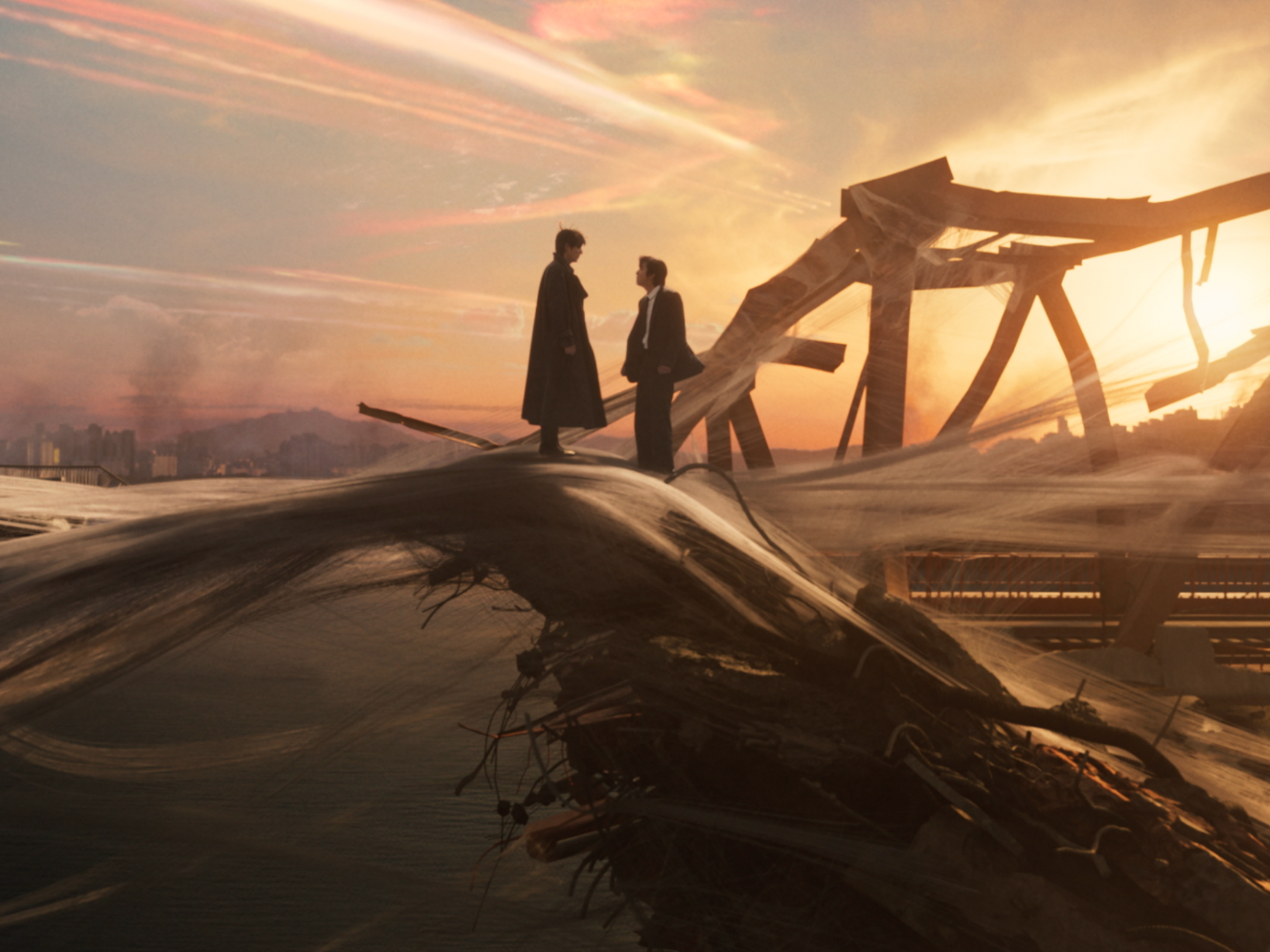 ドクシャの読んでいた小説「滅亡した世界で生き残る三つの方法」の登場人物で、多彩な武器を駆使し桁違いの強さを持つ謎の人物ユ・ジュンヒュク(イ・ミンホ)が、映像と同じ橋の上でドクシャと対峙する。小説の結末を書き換えようとするドクシャの前に突如として現れ、「お前に何ができる」と圧倒的な力の差を見せつけて突き放す場面が写し出されている。